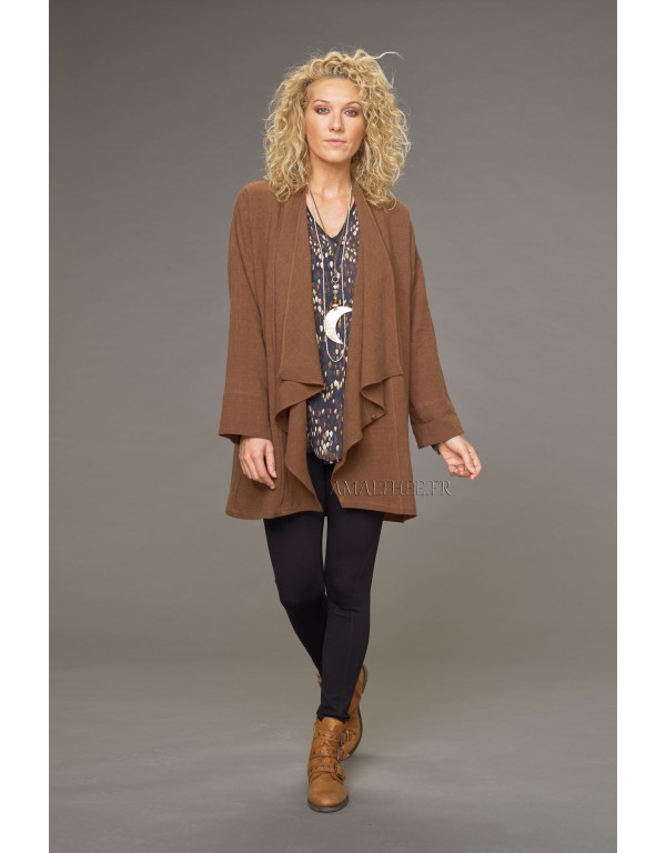 Wool linen coat, draped collar, raglan sleeve, mid-thigh length. Possibility to close the coat with an Amalthee link, French creation and manufacture